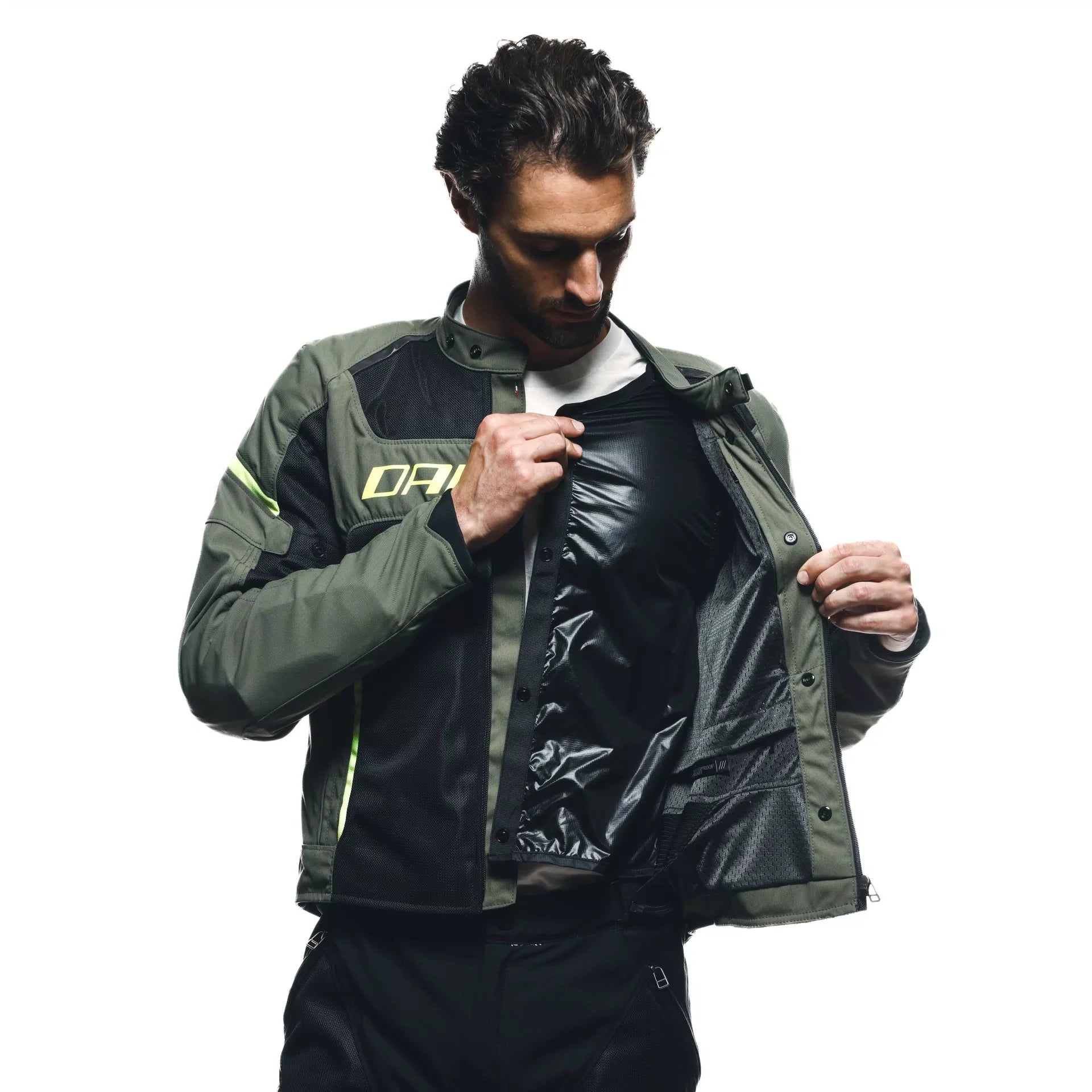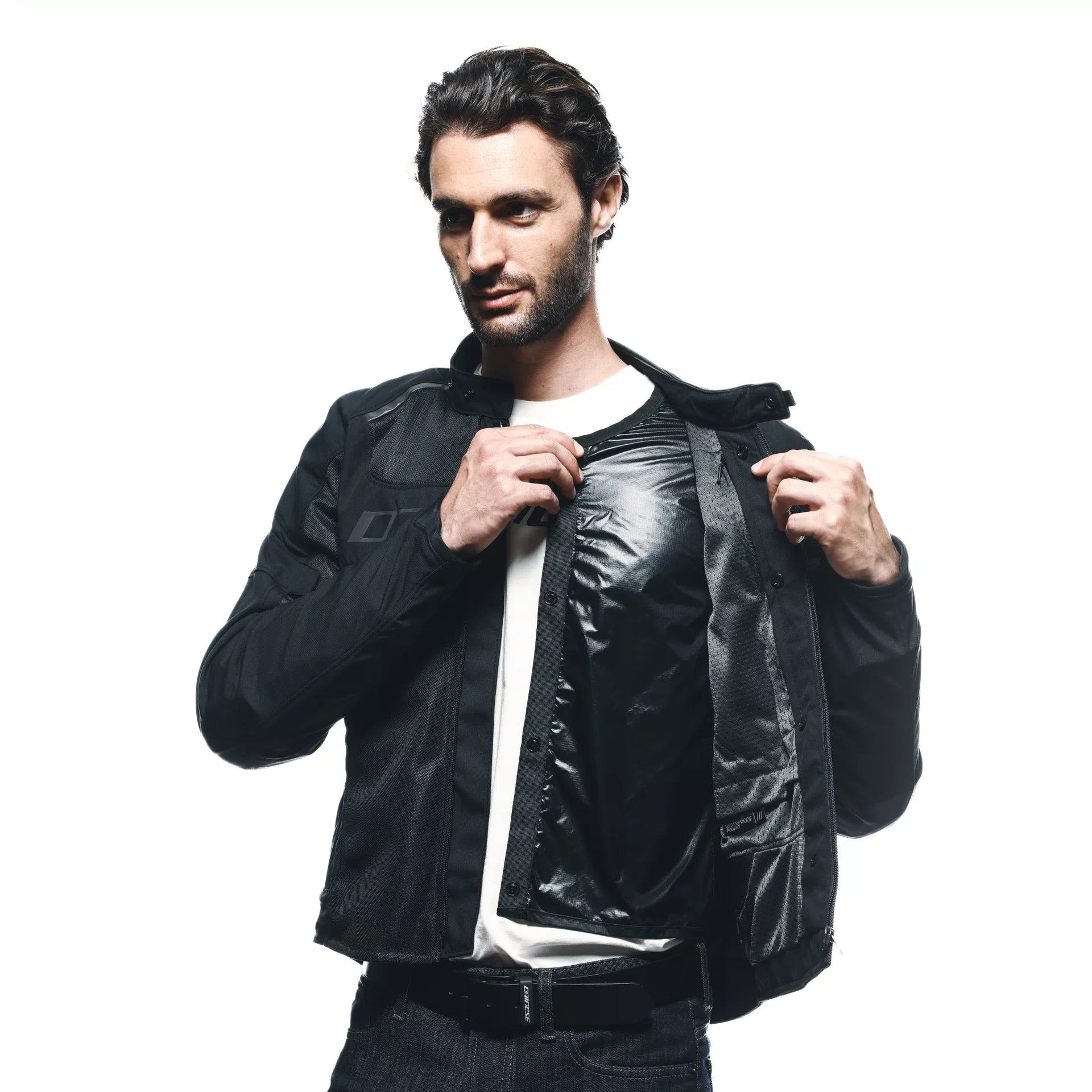 Functional details such as awaterproof inner pocket and reflective inserts complete this motorcycle jacket, one of the most highly appreciated in Dainese's history.
