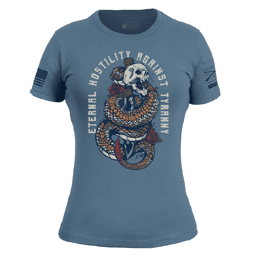 Celebrate your patriotism with our 2024 June Club ladies' shirt, Eternal Hostility. Featuring a badass design, this shirt of the month will show off your love for country. Slip it on and feel the strength and pride of being a true American.