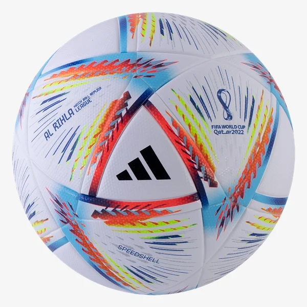 The latest version is "Al Rihla", translated as "The Journey" in Arabic. As the game gets faster and flight stability becomes more important, the ball is designed to travel faster and maintain speed in the air, the fastest ball in tournament history.Al-Rihla is the first FIFA World Cup ball made using only water-based inks and glues.The vibrant colors are inspired by the culture, boats and flag of Qatar.