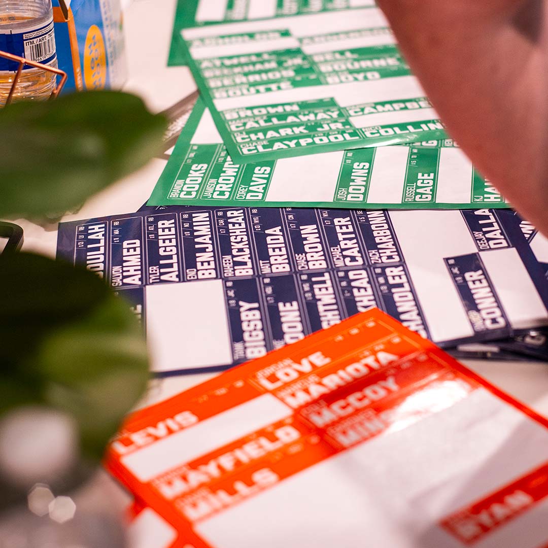 • Exclusive 58”x36” Draft Board design exudes the Draft Experience and ensures your Draft Party’s success.