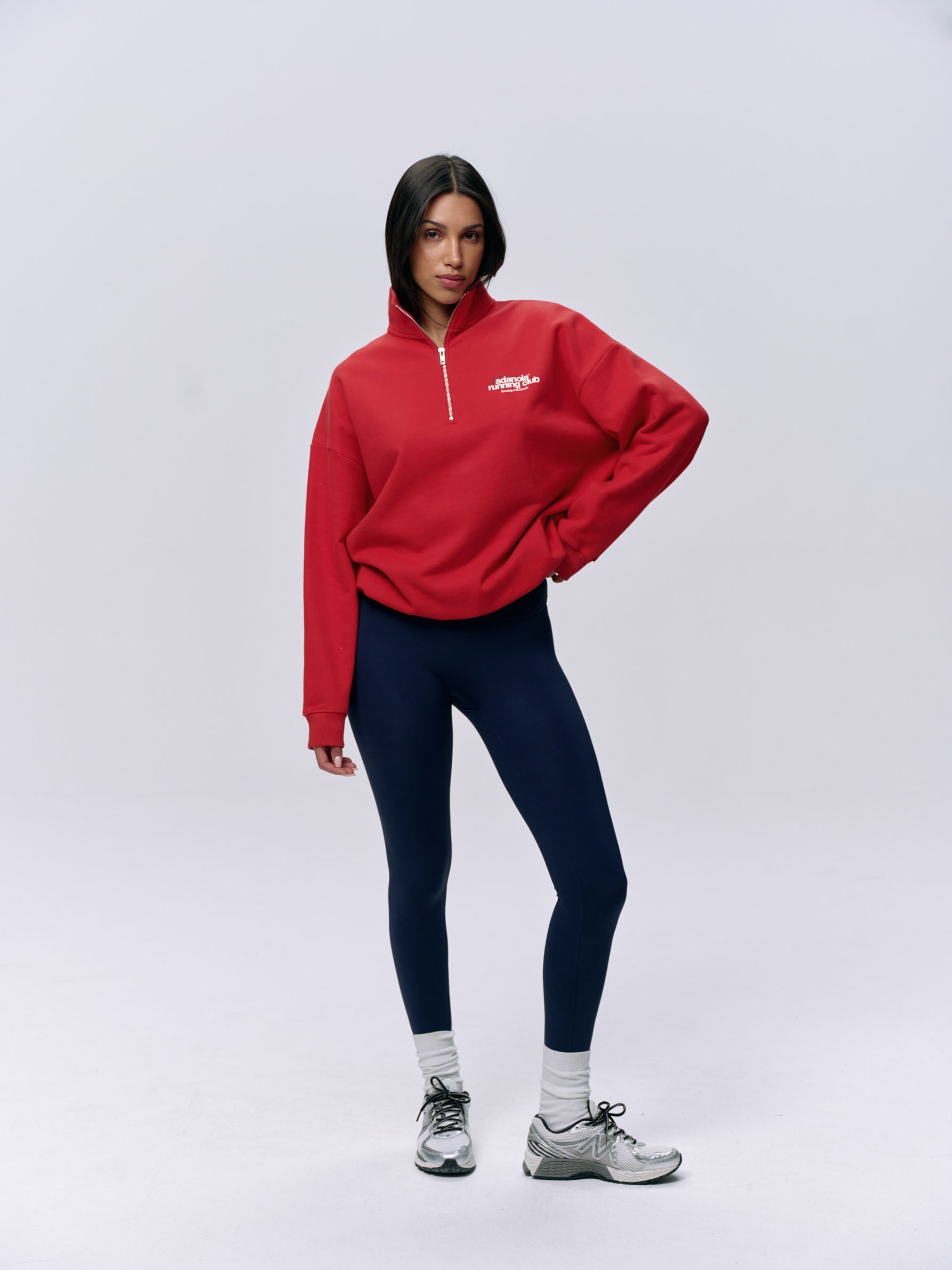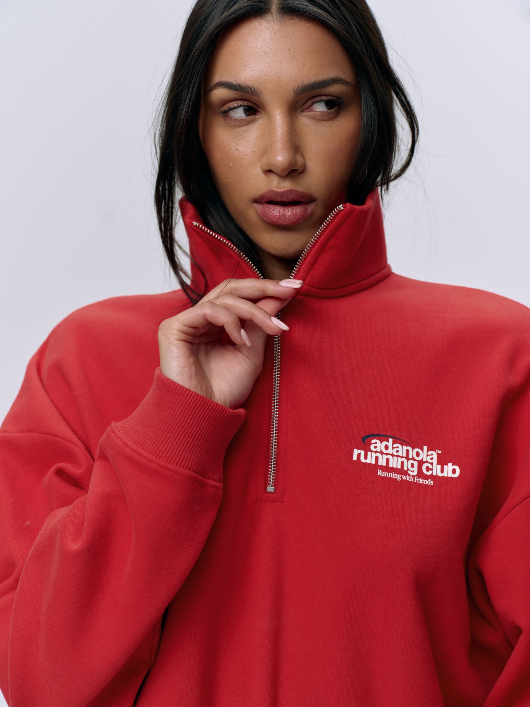 Adanola Running Oversized Funnel Neck Zip Sweatshirt - Classic Red