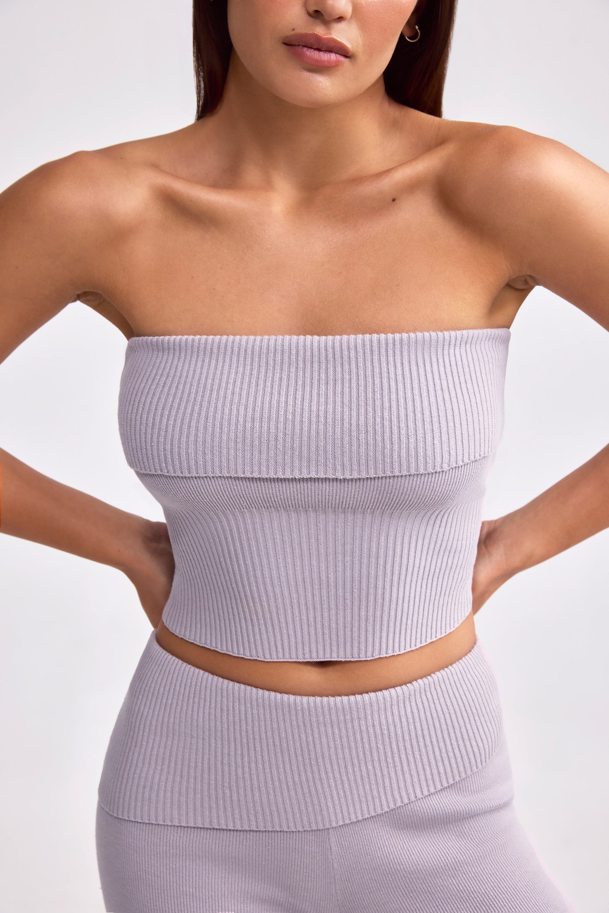 Bandeau Chunky Knit Crop Top in Dusty Lavender
