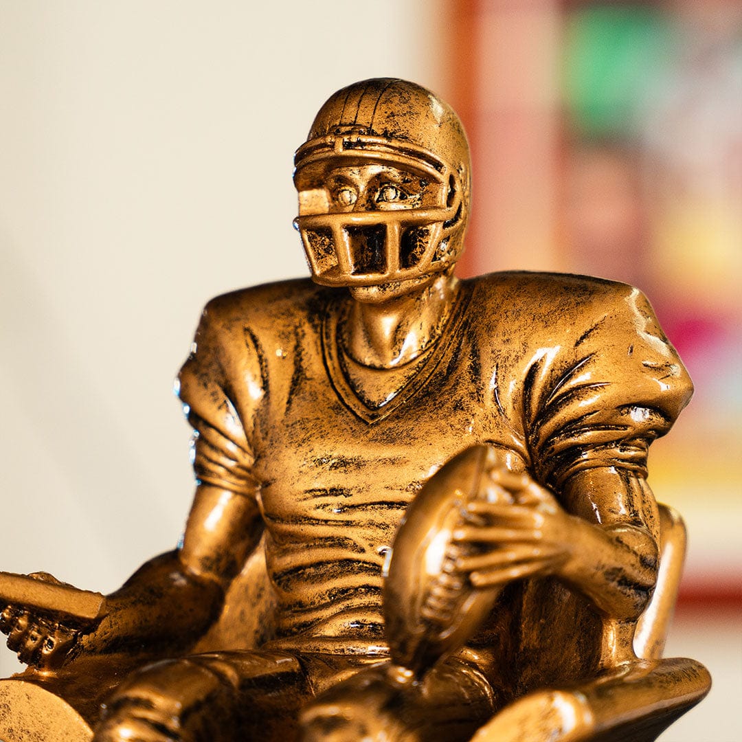 Sitting at nearly 15” tall, our Golden Player Fantasy Football Trophy is the perfect award for armchair champions everywhere. It comes on top of a sturdy wooden perpetual base with room for a front league engraving and 16 past winners’ plates. It’s gold, Jerry Jones, gold!