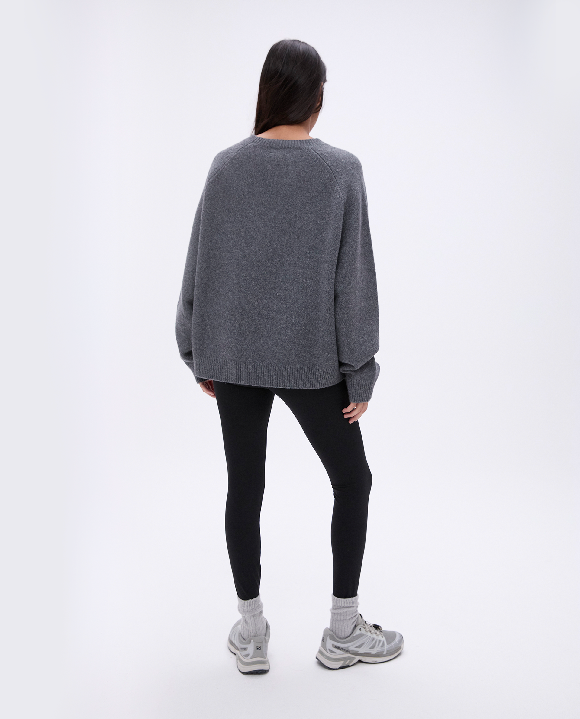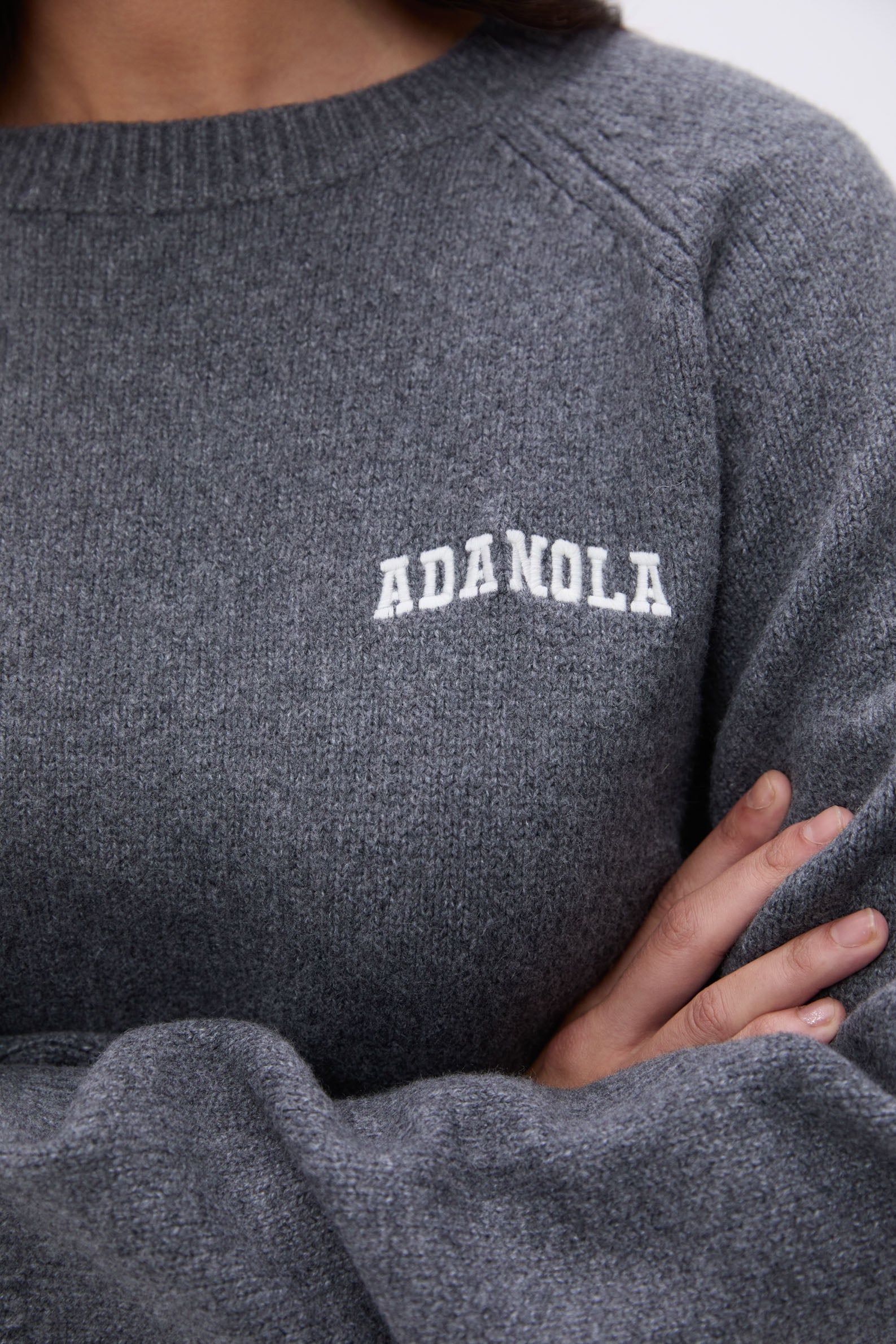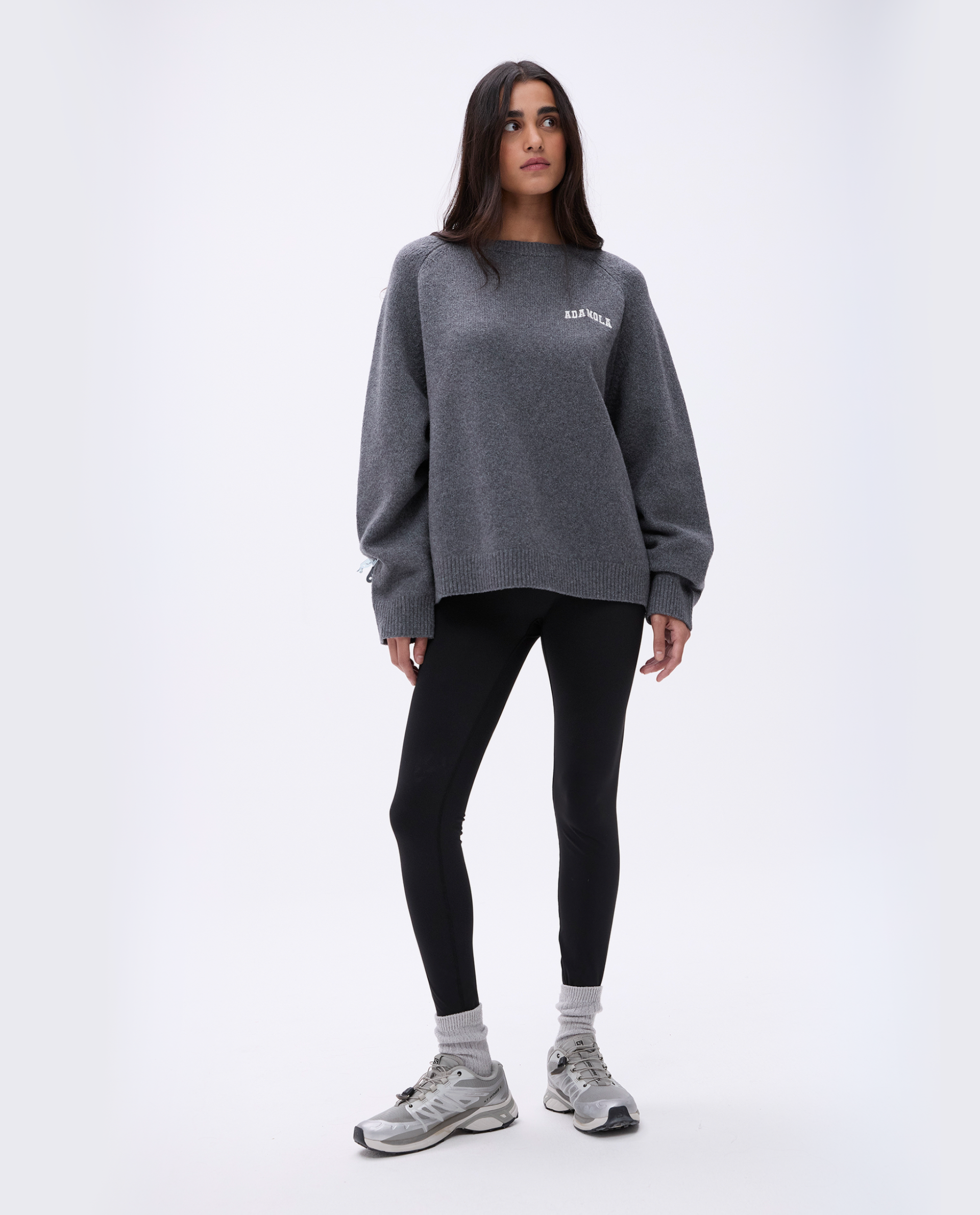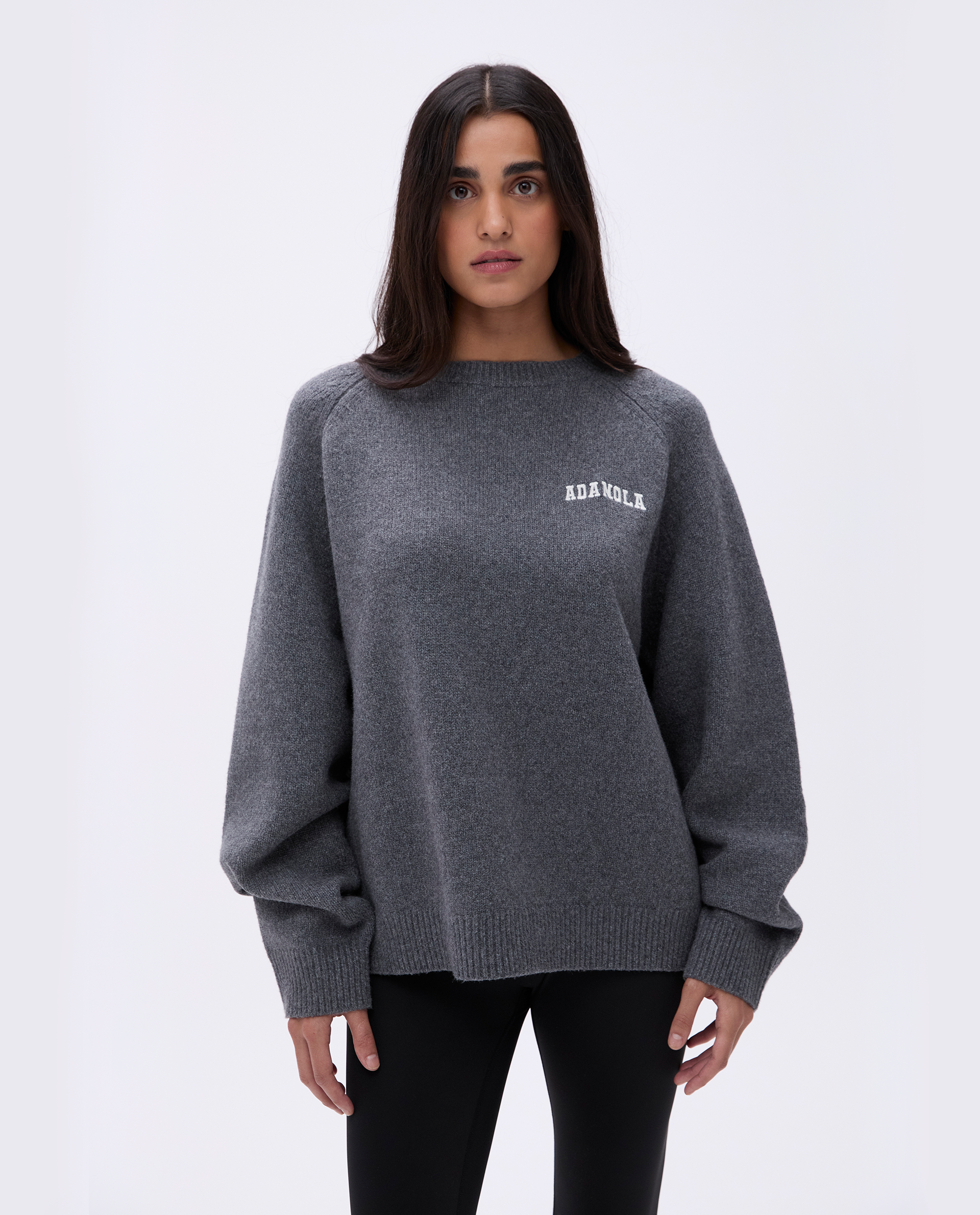 Varsity Oversized Knit Sweatshirt - Dark Grey/Cream